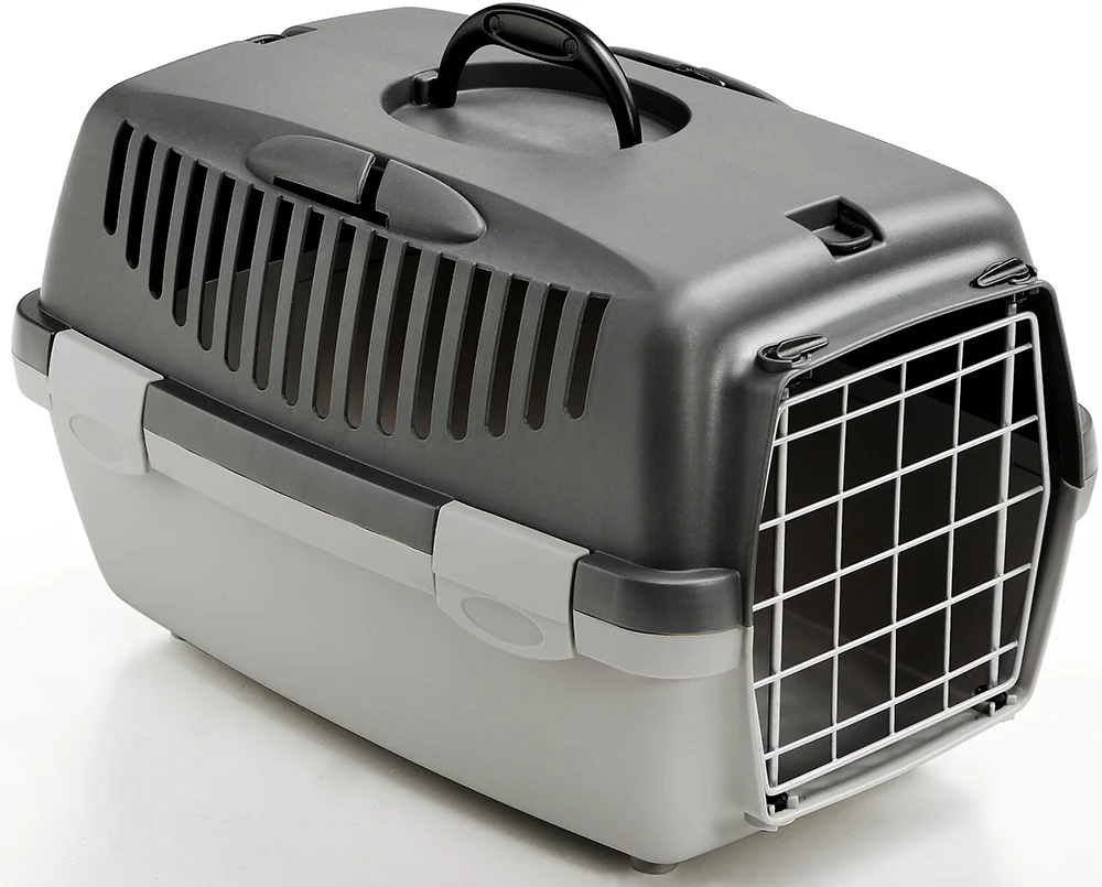 Durable cat carrier box with secure lock and ventilation, perfect for safe travel.