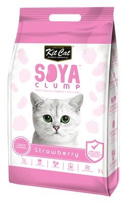 Kit Cat Eco-Friendly Soya Clumping Cat Litter with Strawberry Scent offers natural odor control, quick clumping, and a refreshing fragrance for a cleaner, fresher home.