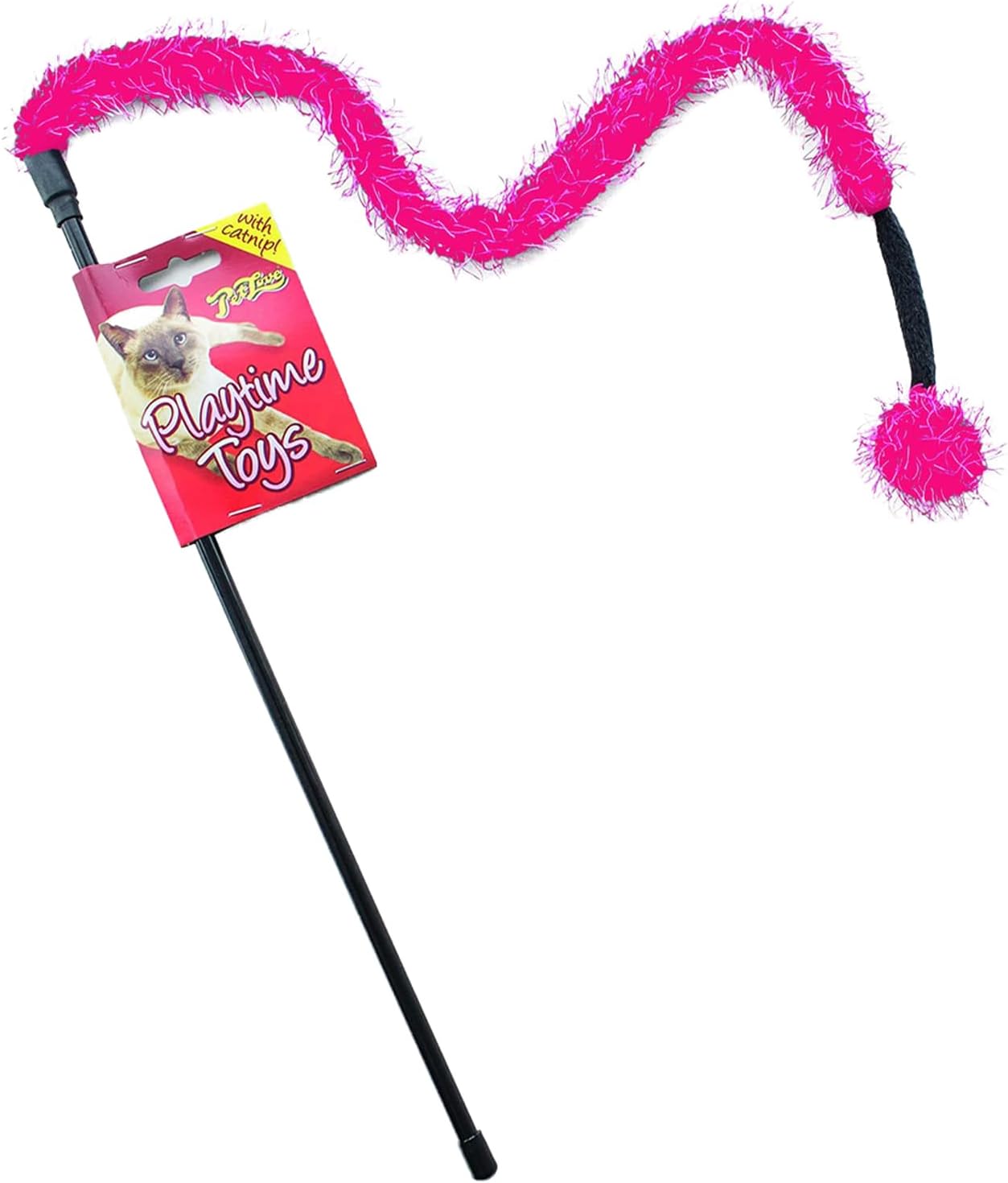 Pet Love Tail Tikkler Black & Pink Wand Cat Teaser Toy with Catnip 1 pcs
